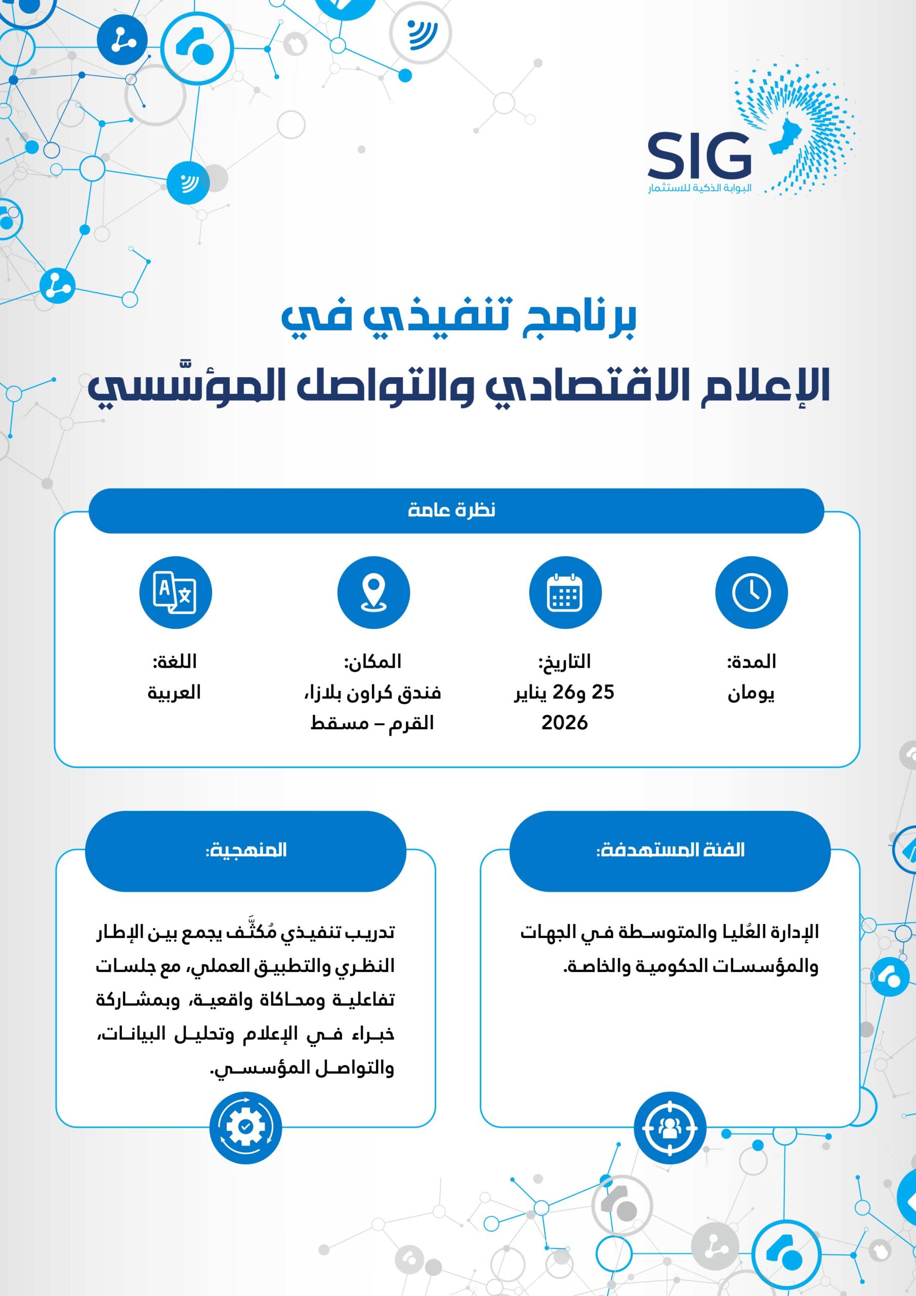 برنامج مُكثَّف لمدة يومين، يُقدِّم أفضل المُمارسات الدولية في مجال الإعلام الاقتصادي والتواصل المؤسَّسي